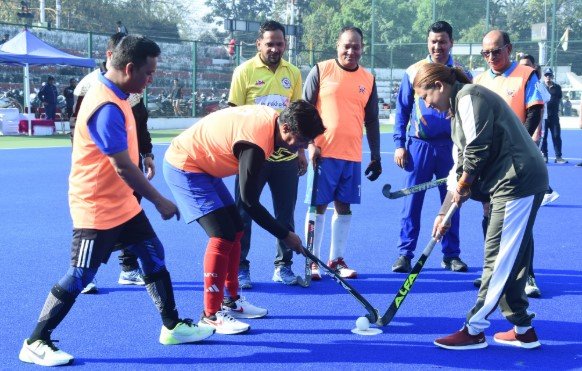 खिलाड़ियों संग मंत्री रेखा आर्या ने खेला हॉकी मैच