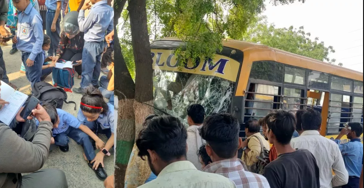 बताया गया कि बस में 15 से 20 छात्र सवार थे। हादसे होते ही बच्चों में चीख-पुकार मच गई। वहीं, इस हादसे में सिर्फ बस चालक को हल्की-फुल्की चोट आई है।