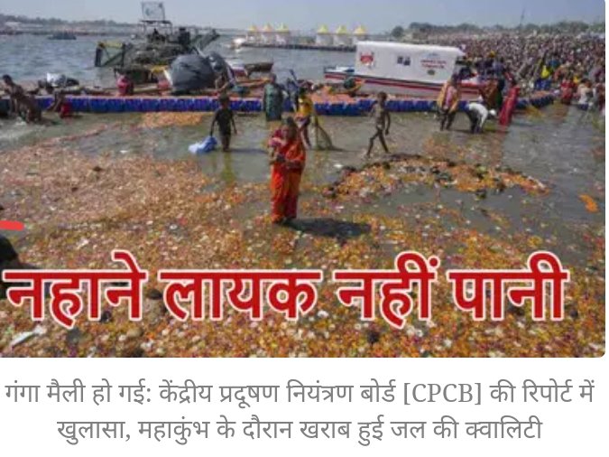 केंद्रीय प्रदूषण नियंत्रण बोर्ड की रिपोर्ट से स्पष्ट है कि गंगा की जिस पवित्रता का वर्णन हमारे धार्मिक ग्रंथों में किया गया है, महाकुंभ की गंगा अब पवित्र नहीं रह गई है। बोर्ड की रिपोर्ट में बताया गया है कि संगम घाट पर मल से उत्पन्न कोलीफॉर्म की मात्रा प्रति 100 मिलीलीटर पानी में 12,500 मिलियन और शास्त्री पुल पर वह प्रति 100 मिलीलीटर पानी में 10,150 है, जो निर्धारित मात्रा 2000 मिलियन से 5-6 गुना ज्यादा है। जिस पानी के पीने योग्य होने का दावा मोदी योगी की सरकार कर रही है, वह पीने तो क्या, नहाने योग्य भी नहीं है। बोर्ड की इस रिपोर्ट पर नेशनल ग्रीन टिब्यूनल ने भी अपनी मुहर लगा दी है और ये दोनों एजेंसियां सरकारी एजेंसियां ही हैं। जब भी कुंभ की व्यवस्था और प्रबंधन पर सवाल उठे हैं, सरकार ने ऐसे सवाल उठने वालों को हिंदुत्व विरोधी, सनातन विरोधी, धार्मिक आस्थाओं पर हमला करने वाले … और न जाने क्या क्या कहा है! अब मोदी-योगी सरकार को यह बताना चाहिए कि ये दोनों सरकारी निकाय क्या हिंदुत्व विरोधी और सनातन विरोधी हैं?