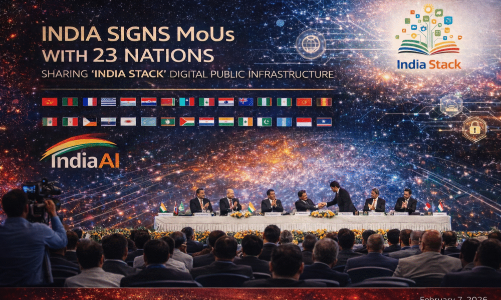 नई दिल्ली — ‘डिजिटल कूटनीति‘ के एक ऐतिहासिक प्रदर्शन में, भारत ने प्रौद्योगिकी शासन (टेक्नोलॉजी गवर्नेंस) में वैश्विक अग्रणी के रूप में अपनी स्थिति मजबूत कर ली है। 6 फरवरी, 2026 को राज्यसभा में प्रस्तुत आंकड़ों के अनुसार, भारत सरकार ने अपनी क्रांतिकारी डिजिटल सार्वजनिक अवसंरचना (DPI), जिसे ‘इंडिया स्टैक’ के नाम से जाना जाता है, साझा करने के लिए 23 देशों के साथ समझौता ज्ञापनों (MoUs) और अनुबंधों पर हस्ताक्षर किए हैं।