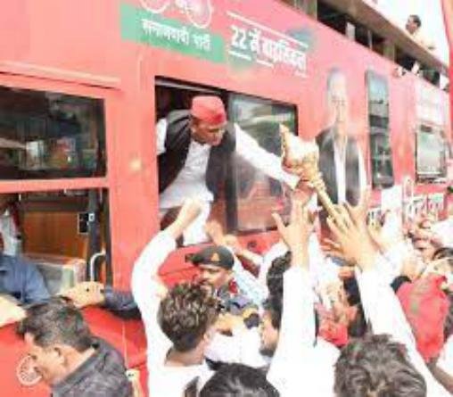 कानपुर, सपा मुखिया अखिलेश यादव ने विधानसभा चुनाव 2022 के लिए चुनावी बिगूल कानपुर से फूंक दिया। जाजमऊ गंगा पुल से अखिलेश यादव ने विजय रथ यात्रा की मंगलवार की दोपहर शुरुआत कर दी। नोटबंदी के समय कानपुर देहात के झींझक में जन्मे खंजाची नाथ ने विजय रथ यात्रा को पार्टी का झंडा दिखाकर रवाना कराया। सपा राष्ट्रीय अध्यक्ष ने रथ पर सवार होने के बाद हाथ हिलाते हुए सभी का अभिनंदन किया तो कार्यकर्ताओं ने जोरदार नारेबाजी की।