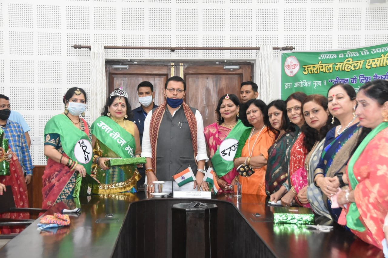 देहरादून । मुख्यमंत्री पुष्कर सिंह धामी ने उत्तरांचल महिला एसोसिएशन द्वारा आयोजित कार्यक्रम में प्रतिभाग किया। मुख्यमंत्री ने संस्था की ओर से उमा तीज सुंदरी, उमा तीज मलिका विजेता महिलाओं को सम्मानित किया। उत्तरांचल महिला एसोसिएशन द्वारा कोविड टीकाकरण जागरूकता के लिए जीवन के लिए वैक्सीन है जरूरी स्लोगन प्रतियोगिता कराई गई। मुख्यमंत्री ने इस प्रतियोगिता के विजेताओं को भी पुरस्कृत किया।