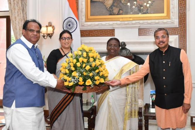 राष्ट्रपति के साथ स्मृति ईरानी के अलावा केंद्रीय मंत्री डा. महेंद्र मुंजापारा और जान बारला ने भी मुलाकात की। स्मृति ईरानी ने राष्ट्रपति के साथ हुई मुलाकात की तस्वीरें ट्वीट भी की हैं। स्मृति ने ट्वीट कर कहा, ‘देश की राष्ट्रपति द्रौपदी मुर्मु जी के साथ मुलाकात का सौभाग्य प्राप्त हुआ।’