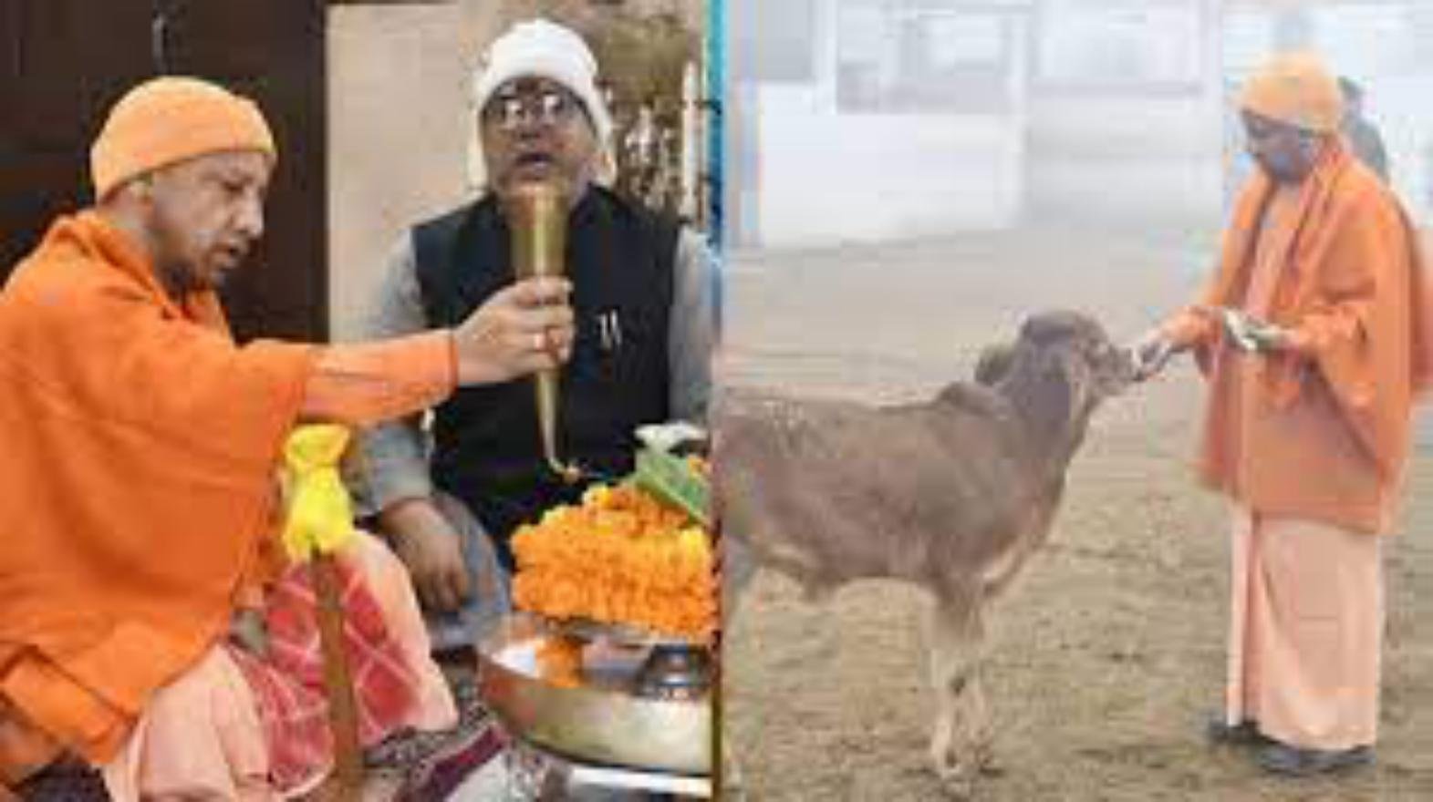 गोवंश को गुड़ व चना खिलाए सीएम योगी